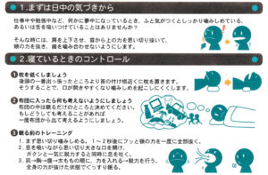 →首の付け根近くに枕を置きます。 そうすることで口が開きやすくなり、 噛み締めを起こしにくくします。