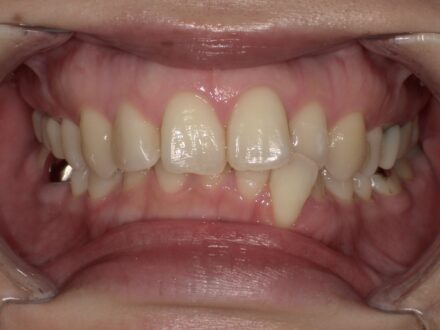 主訴:前歯の突出感とガタつき、噛み合わせ診断名:叢生および左側交叉咬合を伴う歯槽性上顎前突治療区分:本格矯正治療(大人の...