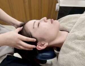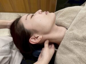 お顔の骨と筋肉に触れて、コリをほぐします。